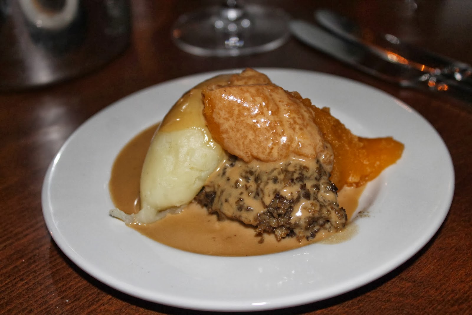 One night, we were able to go to a fancy dinner with the Optos group.  A piper led us down the street to the restaurant, Howies.
